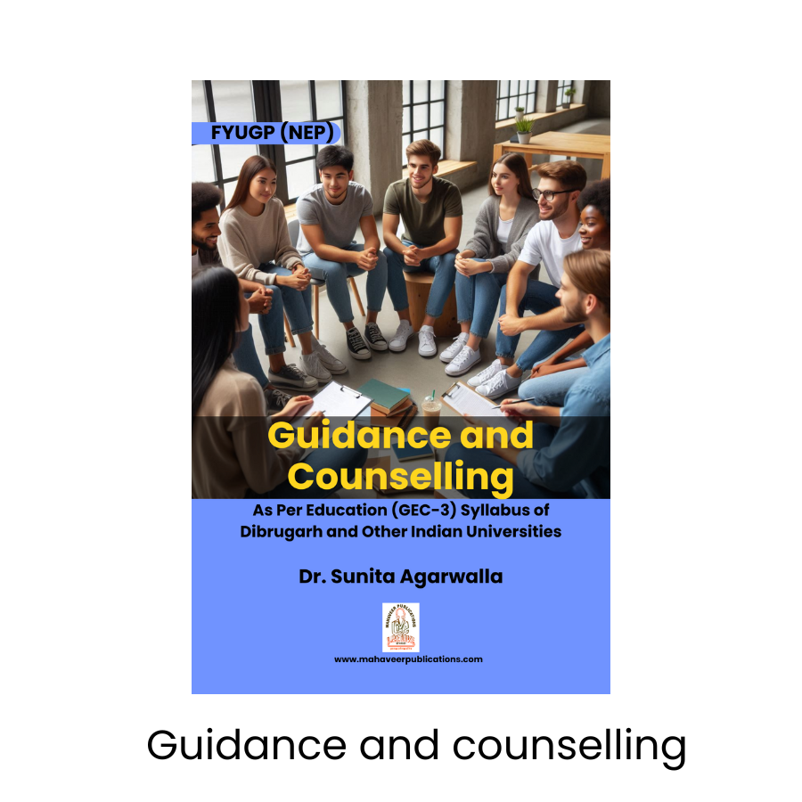 "Guidance and Counselling" by Dr. Sunita Agarwalla is designed as per the FYUGP NEP Education (GEC-3) syllabus of Dibrugarh University and various other Indian universities. This comprehensive book explores key concepts of educational guidance and counselling, covering theoretical foundations, practical techniques, and real-world applications. It provides insights into various types of counselling, stages of guidance, and modern approaches to helping students navigate academic, personal, and career challenges. An essential resource for education students and professionals, this book is published by Mahaveer Publications to meet current academic and professional standards.UNIT-I: GUIDANCE