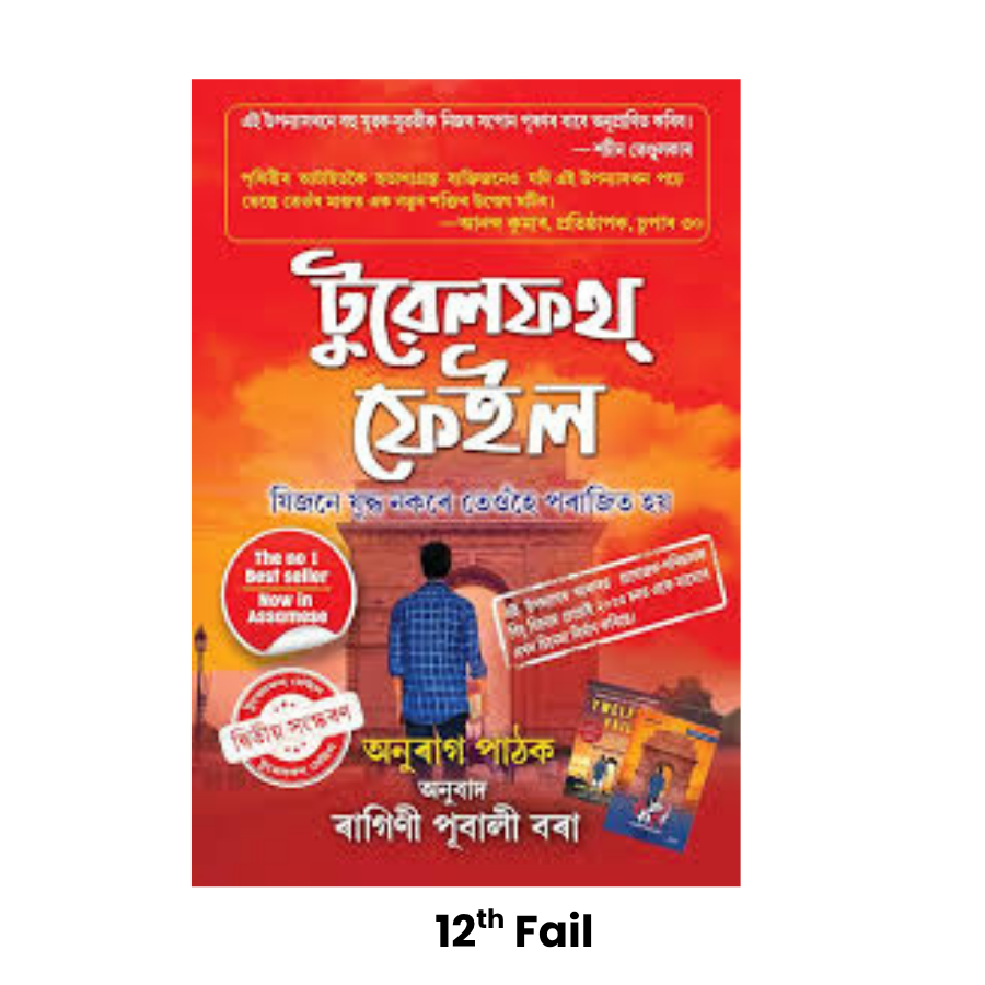 “12th Fail” by Anurag Pathak, published in Assamese by Pradyut Hazarika, is a powerful and deeply motivational story inspired by true events. The novel tells the journey of a young student who, despite failing in the 12th standard, rises again through perseverance, honesty, and hard work to achieve success in life.