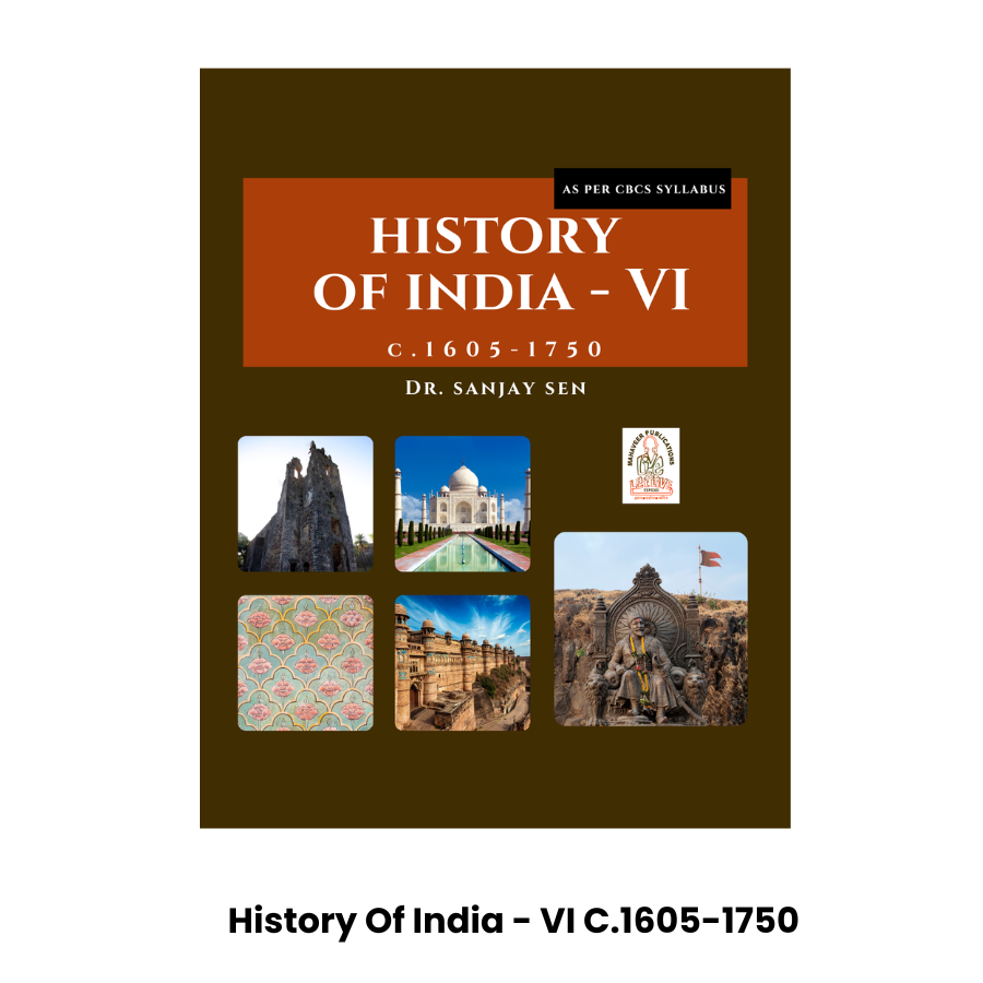 History of India – VI (c.1605–1750) by Dr. Sanjay Sen is a comprehensive and analytical textbook designed in accordance with the CBCS, FYUGP, and NEP undergraduate syllabus for BA History Honours and Non-Honours courses across Indian universities. The book explores the crucial phase of Indian history from the late Mughal period to the rise of regional powers, offering a balanced and well-researched understanding of political, administrative, socio-economic, and cultural developments between 1605 and 1750.