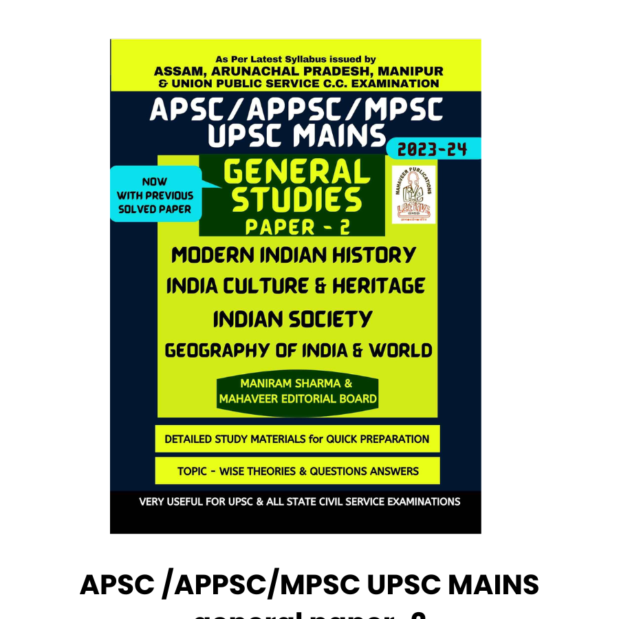 APSC/APPSC/MPSC Mains – General Studies Paper-2 by Maniram Sharma is a comprehensive, updated, and exam-oriented guide tailored for aspirants of the Combined Competitive Mains Examination conducted by the Assam, Arunachal Pradesh, and Manipur Public Service Commissions. This edition is aligned with the latest revised syllabus and caters specifically to the requirements of General Studies Paper-II, a critical component of the civil services mains examination.