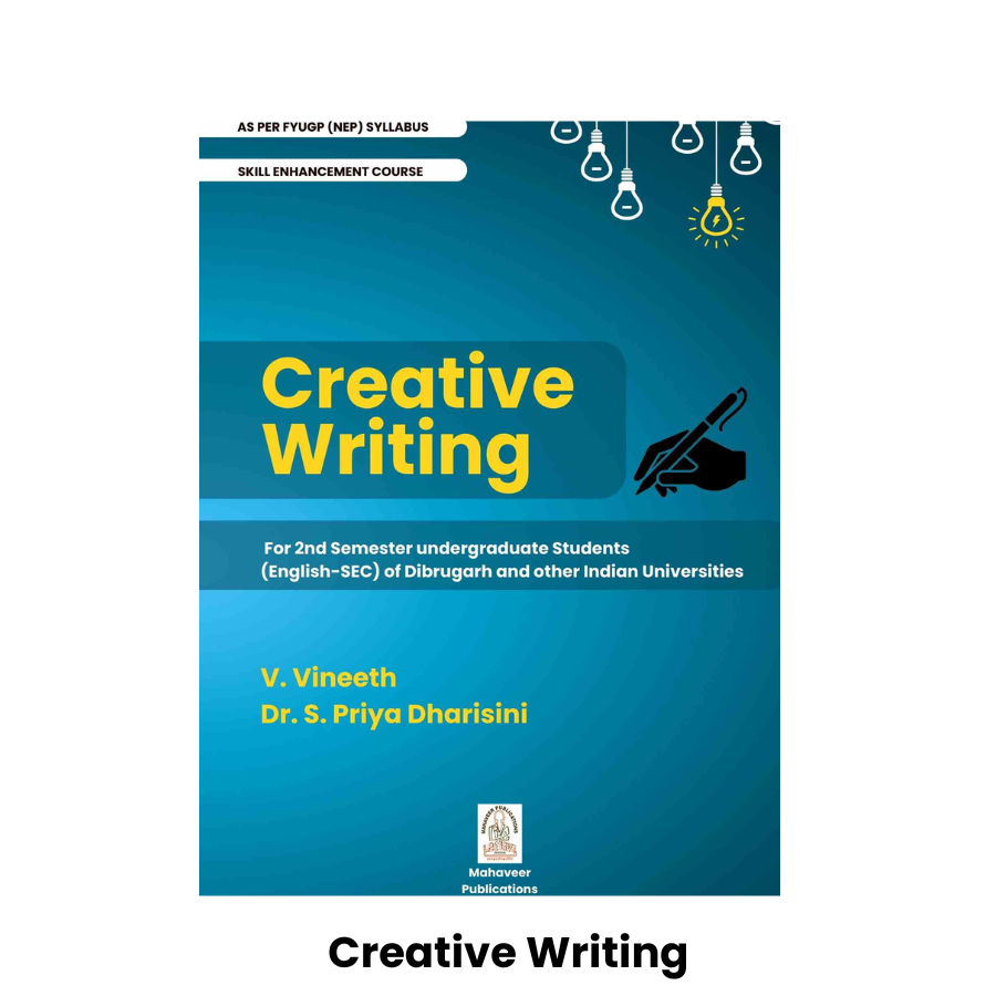 "Creative Writing" by Dr. S. Priya Dharsini and V. Vineeth is a comprehensive textbook designed for the Skill Enhancement Course (SEC) in English for the 2nd semester undergraduate students. Aligned with the FYUGP NEP syllabus of Dibrugarh University and applicable to various Indian universities, this book equips students with the foundational skills of creative expression through writing. It covers key genres such as poetry, short stories, script writing, and personal essays, fostering imagination, narrative techniques, and linguistic creativity. Published by Mahaveer Publications, it is an ideal companion for students aiming to enhance their literary and expressive abilities.