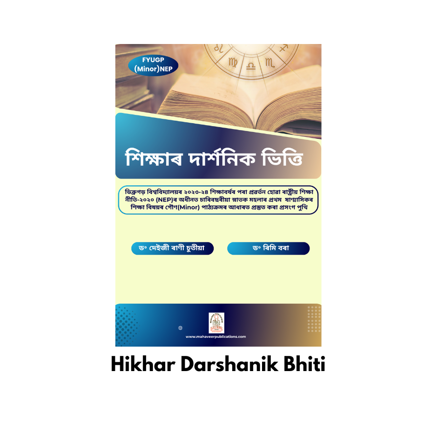 Hikhar Darshanik Bhiti" by Dr. Daisy Rani Chutia and Dr. Rimi Bora is a foundational textbook specially designed for students of B.A. 1st Semester Minor (Education/Philosophy) under the FYUGP NEP 2020 syllabus of Dibrugarh University. Written in accessible Assamese, this book bridges the gap between philosophical theory and educational practice, making it ideal for students beginning their academic journey in the field of philosophy and education.