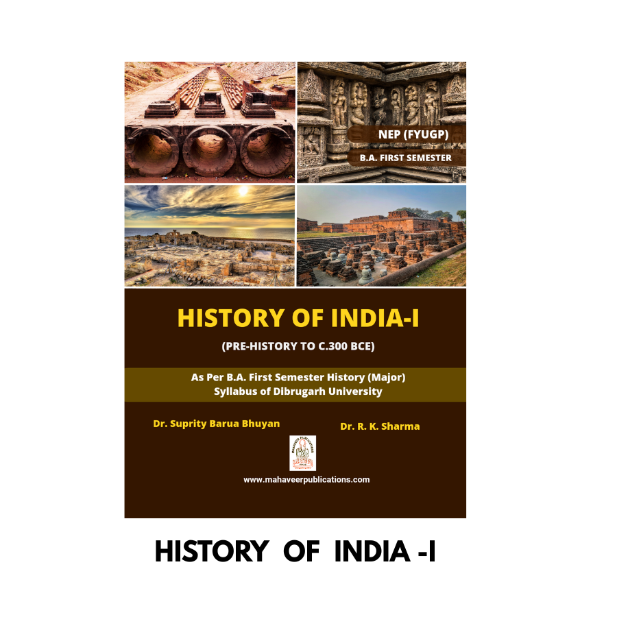 "History of India – I" by Dr. Suprity Barua Bhuyan and Dr. R.K. Sharma is a foundational textbook developed for students of B.A. First Year History Major under the Four-Year Undergraduate Programme (FYUGP) in accordance with the National Education Policy (NEP) 2020. Tailored to the Dibrugarh University syllabus, this book offers a rich and in-depth understanding of the early phases of Indian history.