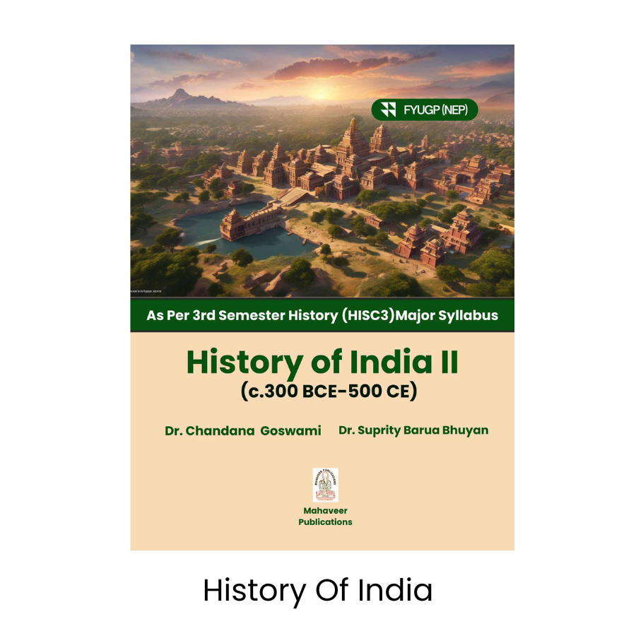 "History of India II (c. 300 BCE – 500 CE)" is a meticulously researched and student-friendly textbook authored by Dr. Chandana Goswami and Dr. Suprity Barua Bhuyan, designed according to the FYUGP NEP 2020 curriculum for B.A. 3rd Semester History Major (HISC3).