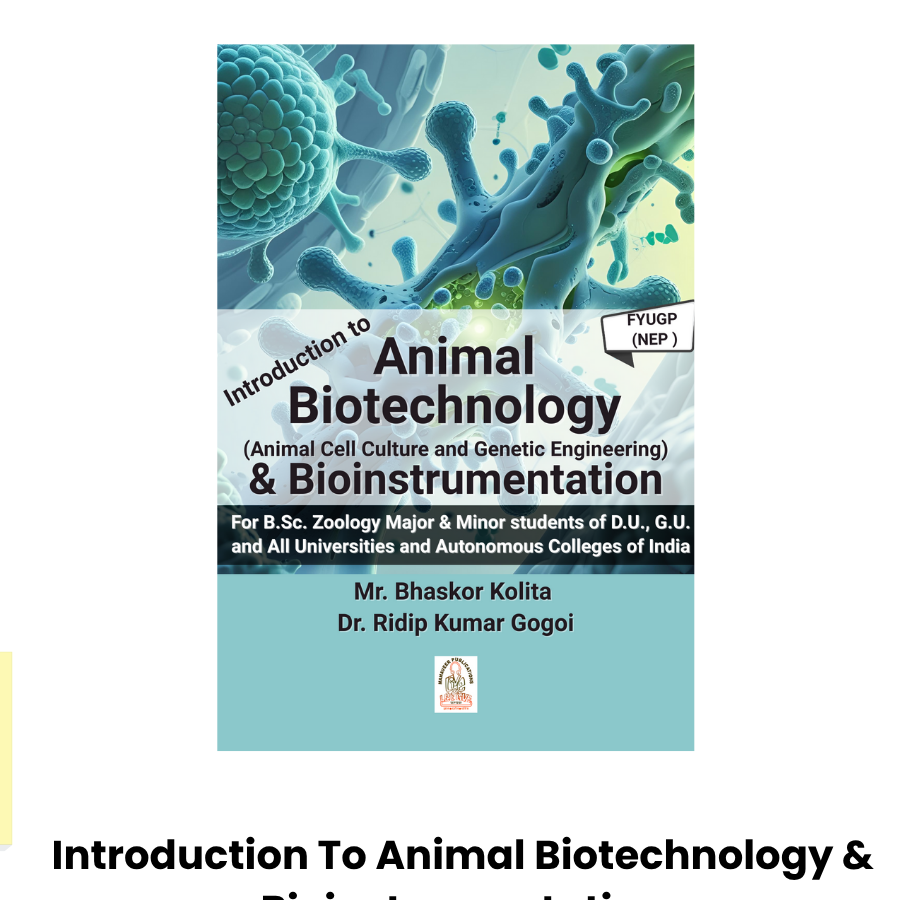 Introduction to Animal Biotechnology & Bioinstrumentation : Animal Cell Culture and Genetic Engineering is a well-structured and comprehensive textbook designed in accordance with the FYUGP–NEP syllabus for B.Sc. Zoology Major and Minor students under Dibrugarh University, Gauhati University, and other Indian universities and autonomous colleges.