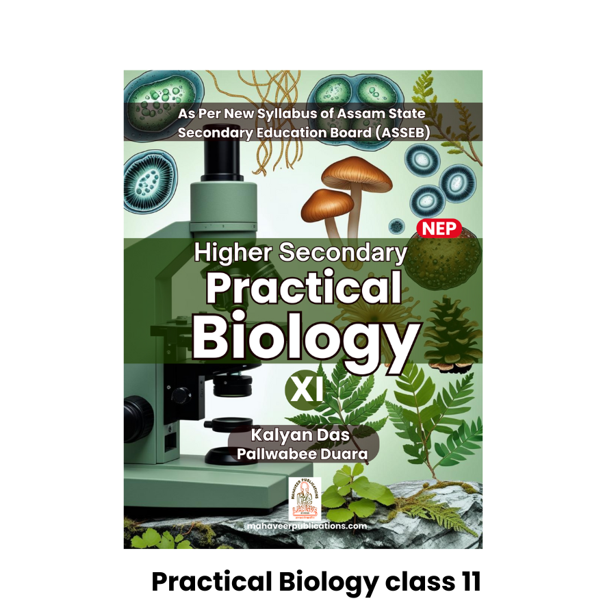 "Practical Biology" by Kalayan Das and Pallwabee Duara is a comprehensive and student-friendly laboratory manual designed according to the new first-year syllabus prescribed by the Assam State Secondary Education Board (ASSEB). This book is specially crafted for Class 11 students to help them build a strong foundation in practical biology through structured experiments and observations.