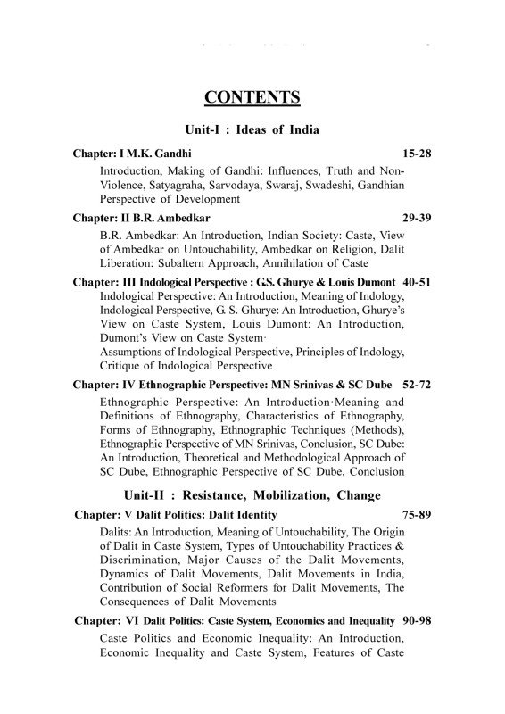 ✅ Unit-I: Ideas of India – Covers influential thinkers like M.K. Gandhi and B.R. Ambedkar, along with important sociological perspectives such as the Indological and Ethnographic Approaches.