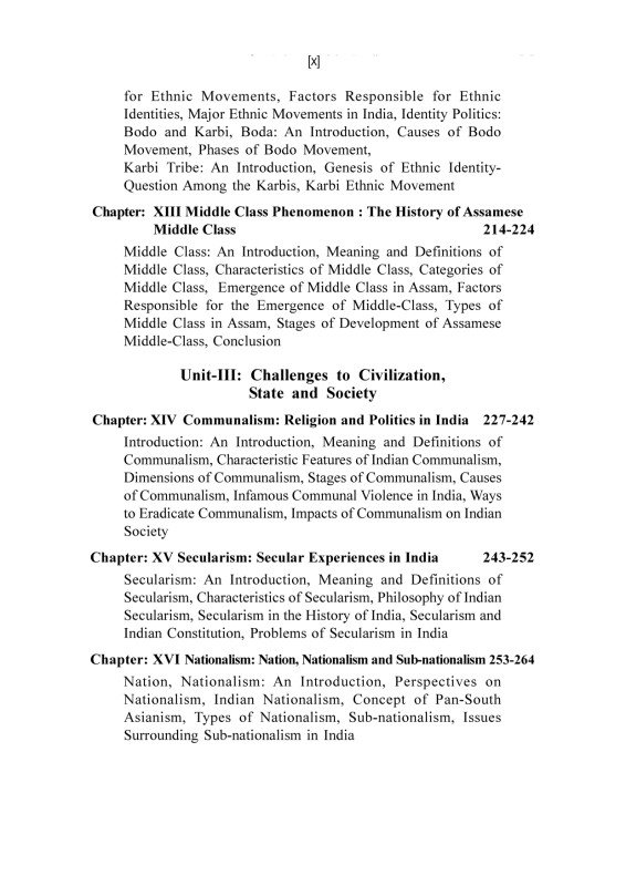✅ Unit-III: Challenges to Civilization, State, and Society – Explores concepts of Communalism, Secularism, and Nationalism, analyzing their historical and contemporary significance in India.