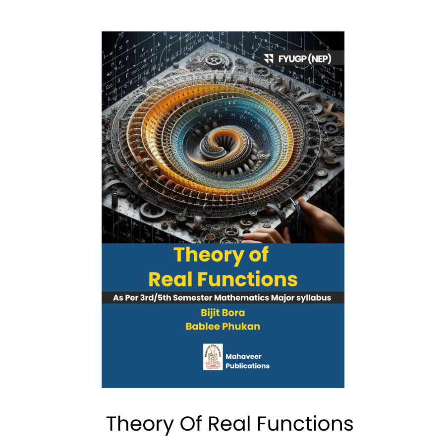 "Theory of Functions" by Bijit Bora and Bablee Phukan is an essential textbook designed according to the FYUGP NEP syllabus for Mathematics Major students of 3rd and 5th semester under Dibrugarh University and other Indian universities. This comprehensive guide covers all key aspects of function theory with a clear and systematic approach, aiding in the conceptual understanding and practical application of mathematical principles. Published by Mahaveer Publications, this book is an excellent resource for undergraduate students preparing for advanced studies in mathematics.
