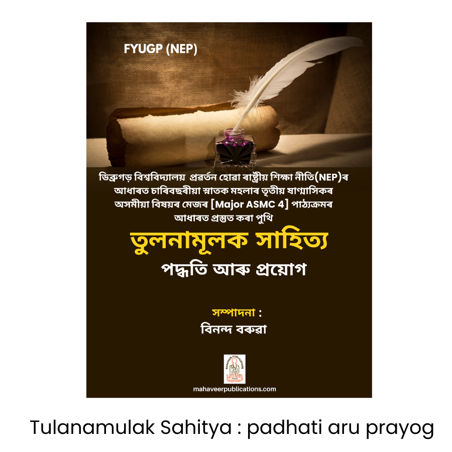 "Tulnamulak Sahitya: Padhati aru Prayog" by Binanda Barua is a comprehensive textbook designed as per the FYUGP NEP 2020 syllabus for BA 3rd Semester Assamese Major (ASMC4) under Dibrugarh University. The book offers a deep insight into the methods and application of Comparative Literature (Tulnamulak Sahitya), exploring theoretical foundations along with practical examples. It covers comparative literary theories, Indian and Western approaches, and provides analytical tools to study texts across languages and cultures. Published by Mahaveer Publications, this book is an essential academic resource for Assamese literature students to understand cross-cultural literary connections.পাঠ্যসূচীৰ সামগ্ৰী (সুচীপত্ৰ):